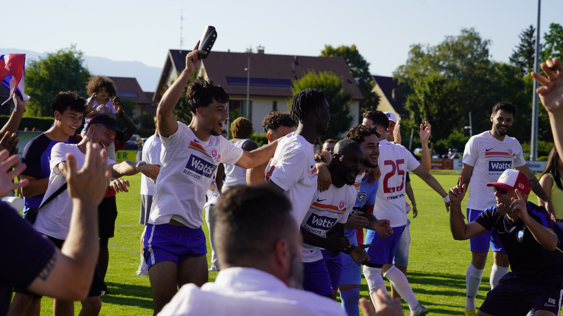 Perly a dû patienter. Beaucoup plus que les champions de 2e ligue genevoise des dernières années. Sacrés début juin après leur victoire sur le terrain de Kosova (2-3), les Perlysiens ont dû passer par un barrage pour s’assurer la promotion. Vainqueur du doublé Coupe-championnat au Jura, Porrentruy arrivait à ce dernier rendez-vous de la saison, peut-être le plus important, avec le vent en poupe. Mais l’équipe de Raffaele Del Rosso est celle qui aura dégagé le plus d’assurance sur ces 180 minutes. La promotion est logique, et surtout méritée. “On a vraiment fait une belle saison, déclarait l’entraîneur perlysien après le coup de sifflet final. On a construit quelque chose petit à petit, sans être pressés, et on est montés en puissance. Maintenant, on va fêter cette promotion”.