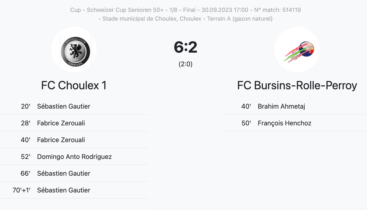 À noter enfin que le quart de finale de Perly 40+, qui se déplacera au Tessin pour affronter Carassesi, a été déplacé au samedi 4 novembre. Les demi-finales auront quant à elle lieu le samedi 27 avril 2024, tandis que les finales sont prévues le samedi 25 mai 2024 à Muttenz (Bâle-Campagne).