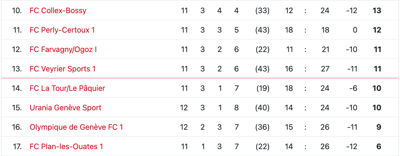 Cela fait donc un quatrième succès de rang pour Bernex, qui n’est plus qu’à quatre longueurs de la deuxième place, avec toutefois un match de plus. “Il ne faut pas prendre la grosse tête, il faut qu’on soit exigeant avec nous-mêmes et qu’on continue à avancer vers l’avant”, analysait le défenseur Nabil Arrob.