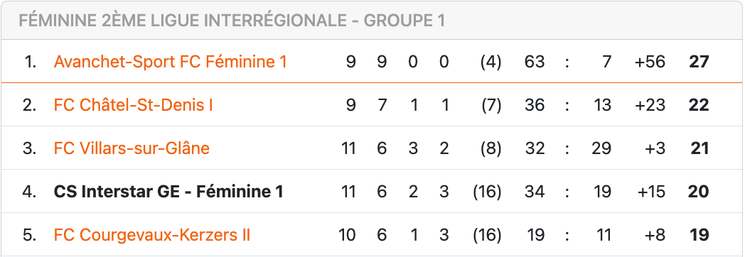 La pause hivernale sera désormais très longue, avec une reprise le dimanche 17 mars seulement, face à Châtel-St-Denis. Les Fribourgeoises avaient été l’une des 3 seules équipes capables de battre Interstar jusque-là. Le début du tour printemps coïncidera donc avec un gros test pour la buteuse Joana Marinho et ses coéquipières. Un match qui nous en dira certainement davantage aussi sur les ambitions que le CSI pourra nourrir au printemps.