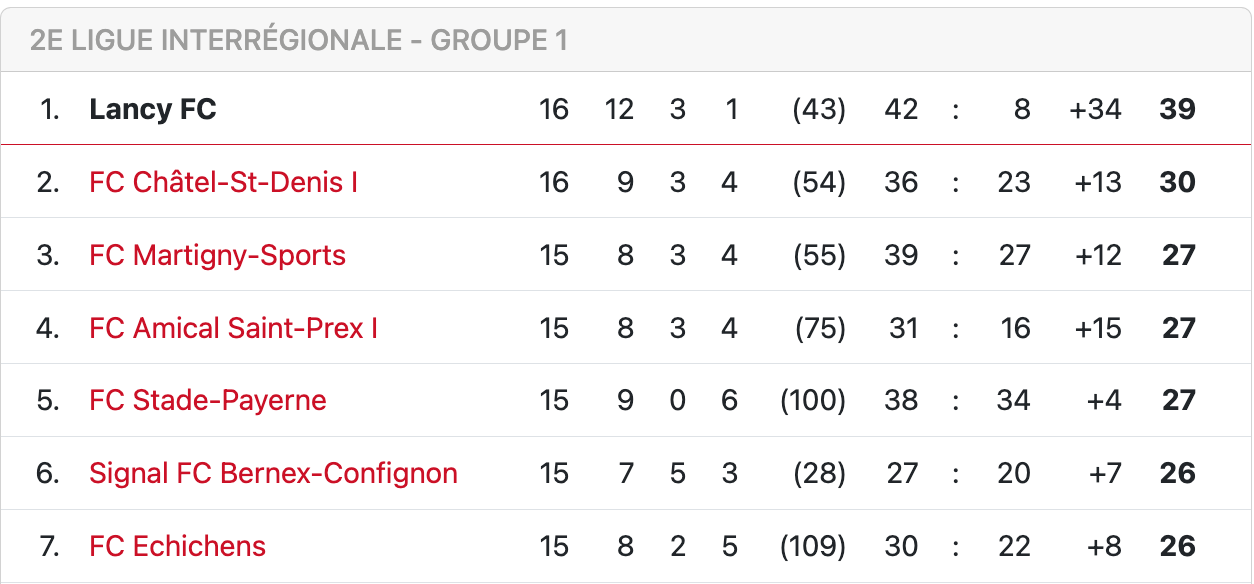 Il a fallu attendre le 2 décembre pour pouvoir assister au choc tant attendu dans le groupe 1 de 2ème ligue inter. Lancy, premier avec six longueurs d’avance, recevait Châtel-St-Denis, son dauphin, au stade de Marignac. Grâce à leur victoire 3-1 avec des réussites de Wague, Liechti et Kali, les Lancéens distancent leur concurrent direct de 9 unités à l’heure de la pause hivernale. Tous les voyants sont au vert.