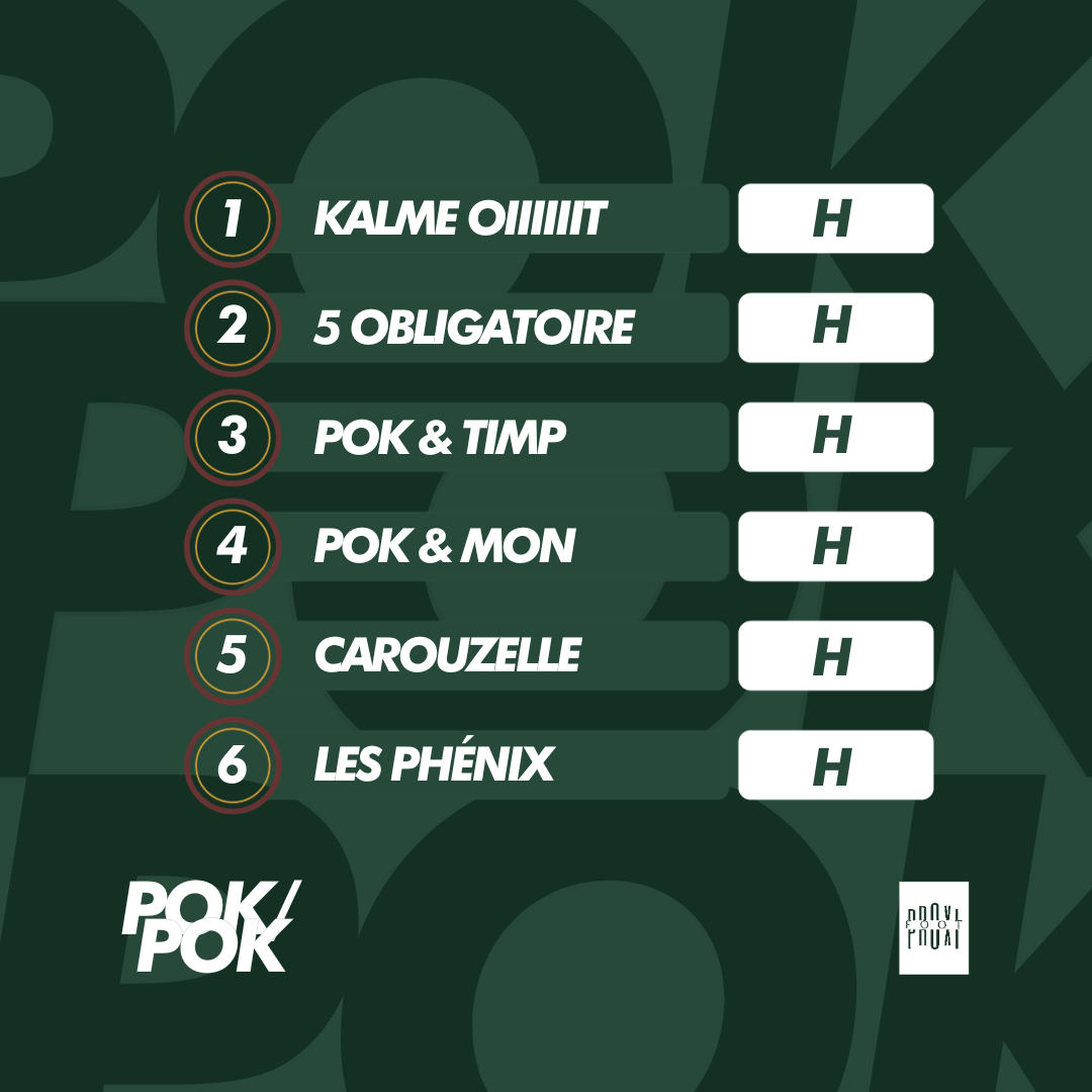 - 8 tables de POK seront disponibles. Un match par poule par créneau horaire. Coup d’envoi du match suivant prévu chaque 15 minutes.