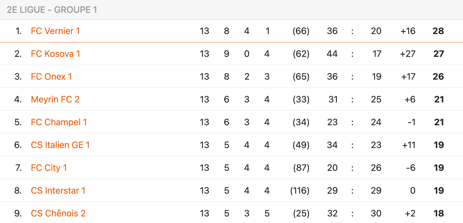 En l’état actuel des choses (samedi 2 mars 2023), trois équipes genevoises de 2ème ligue inter seraient reléguées (UGS, Perly, OG), et donc quatre équipes de 2ème ligue aussi : Satigny, Bosna, Etoile Carouge II et Versoix.