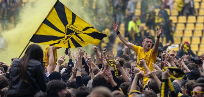 C’était évident depuis des semaines mais c’est désormais officiel: Kilian Pagliuca et Alemannia Aachen sont promus en 3. Liga ! L’équipe d’Aix-la-Chapelle s’est inclinée à domicile samedi contre Bocholt (1-2) pour la première fois depuis novembre dernier et une série de 15 victoires et un nul. Mais l’essentiel était ailleurs: la défaite de Wuppertaler vendredi soir était déjà synonyme de promotion mathématique. La tête était donc à la fête samedi et Kilian Pagliuca (qui a joué la première mi-temps) ne s’est pas privé de s’offrir un bain de foule avec les nombreux supporters locaux. Arrivé libre en octobre dernier, le Genevois a été indiscutable dans l’équipe et a réussi son intégration. Le coup est pleinement réussi pour lui et pour le club.