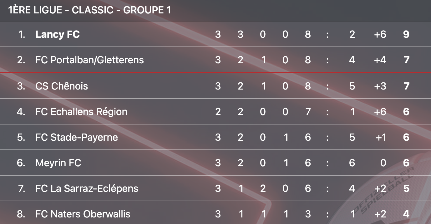 Trois journées de championnat sont passées, et Lancy a réussi un carton plein. Le fait que les Lancéens soient parvenus à arracher la victoire au terme de trois matchs aux configurations différentes est également un signal encourageant. Dominateurs contre Meyrin (1-5), patients pour passer l’épaule en deuxième mi-temps contre Naters (1-0) et enfin matures contre Lausanne, face à qui ils ont été capables de négocier une double avance rapidement acquise (1-2). Le retour en 1ère ligue Classic est pour l’instant on-ne-peut plus réussi. “Je pense qu’on peut faire quelque chose de bien cette année, mais on ne doit pas s’enflammer et prendre match après match”, glissait le double buteur du soir Azihar Mhoumadi à l’interview.