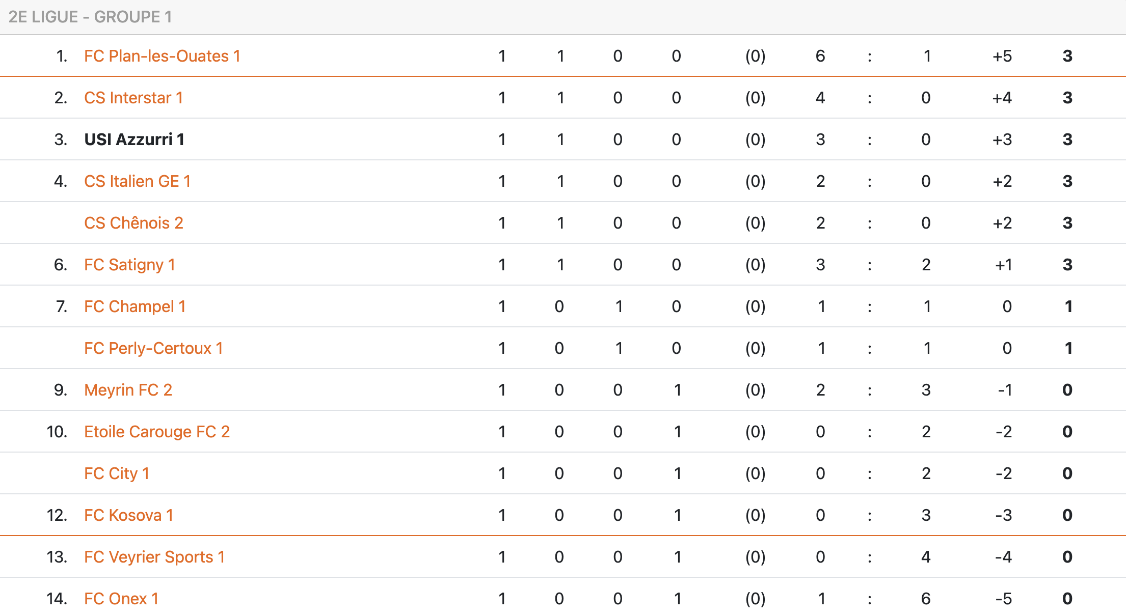 Ce succès est aussi le tout premier de l’histoire de l’USI Azzurri en 2ème ligue. Il y a cinq ans, le club évoluait encore en 5ème ligue. Dimanche prochain, la formation des Libellules tentera d’enchaîner à la maison contre Onex, largement battu par PLO pour sa première (1-6). Kosova tentera lui aussi de se relancer aux Trois-Chêne contre un Chênois II vainqueur 2-0 sur le terrain de City pour lancer son championnat.