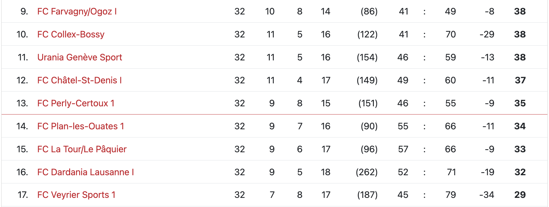 Collex-Bossy a sauvé sa peau, contrairement à Perly, Veyrier et PLO. (Classement final saison 2023-24)