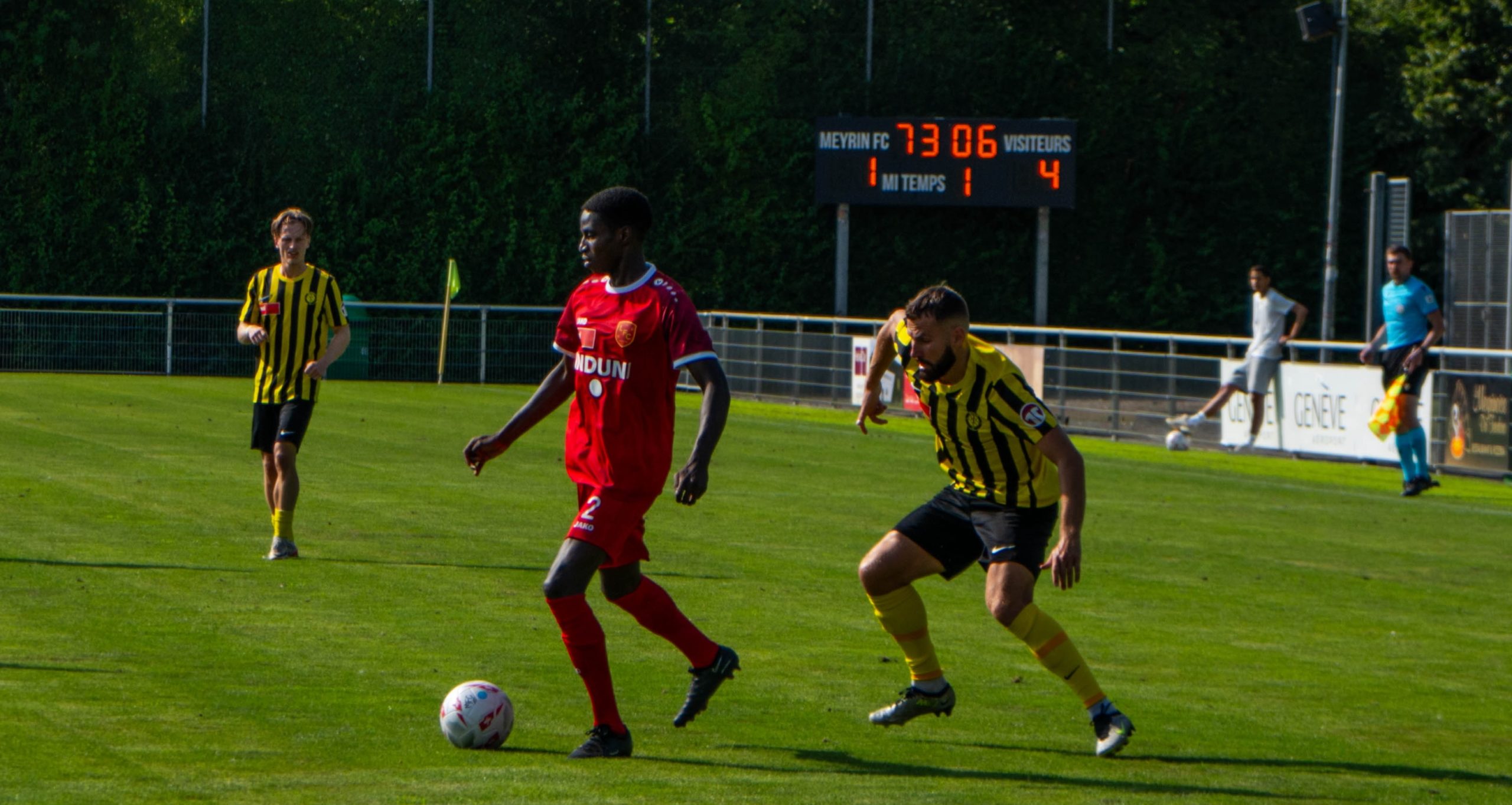 Meyrin (4-3-3) : Lyoth – Monteiro, Puntel, Titie © (46′ Arrob), Wieland – Bile Jama (61′ Billet), Ribeiro, Mirra (46′ Mboso) – Boutaleb (70′ Matuvunu), Keita (70′ Antunes), Reymond.