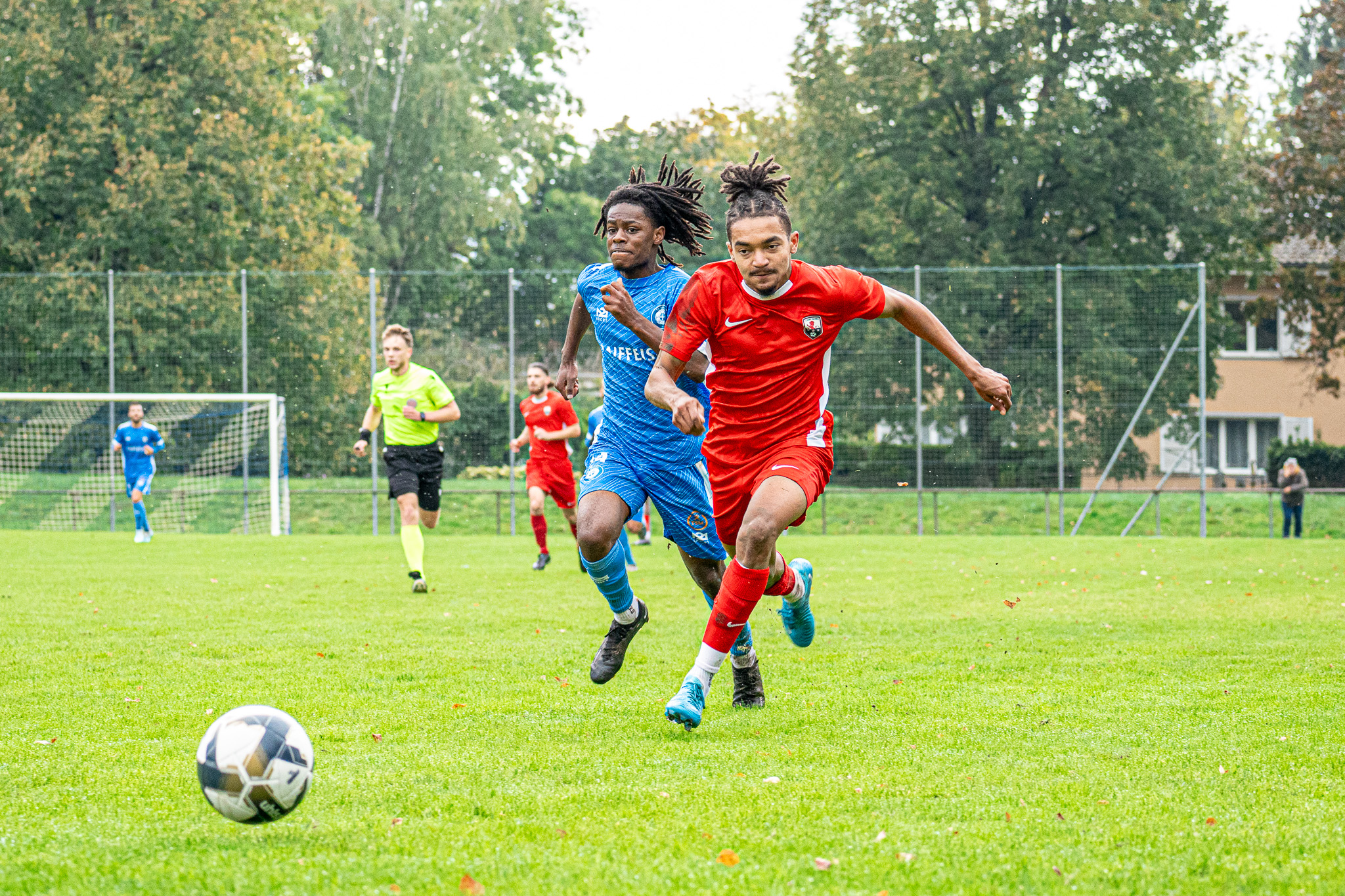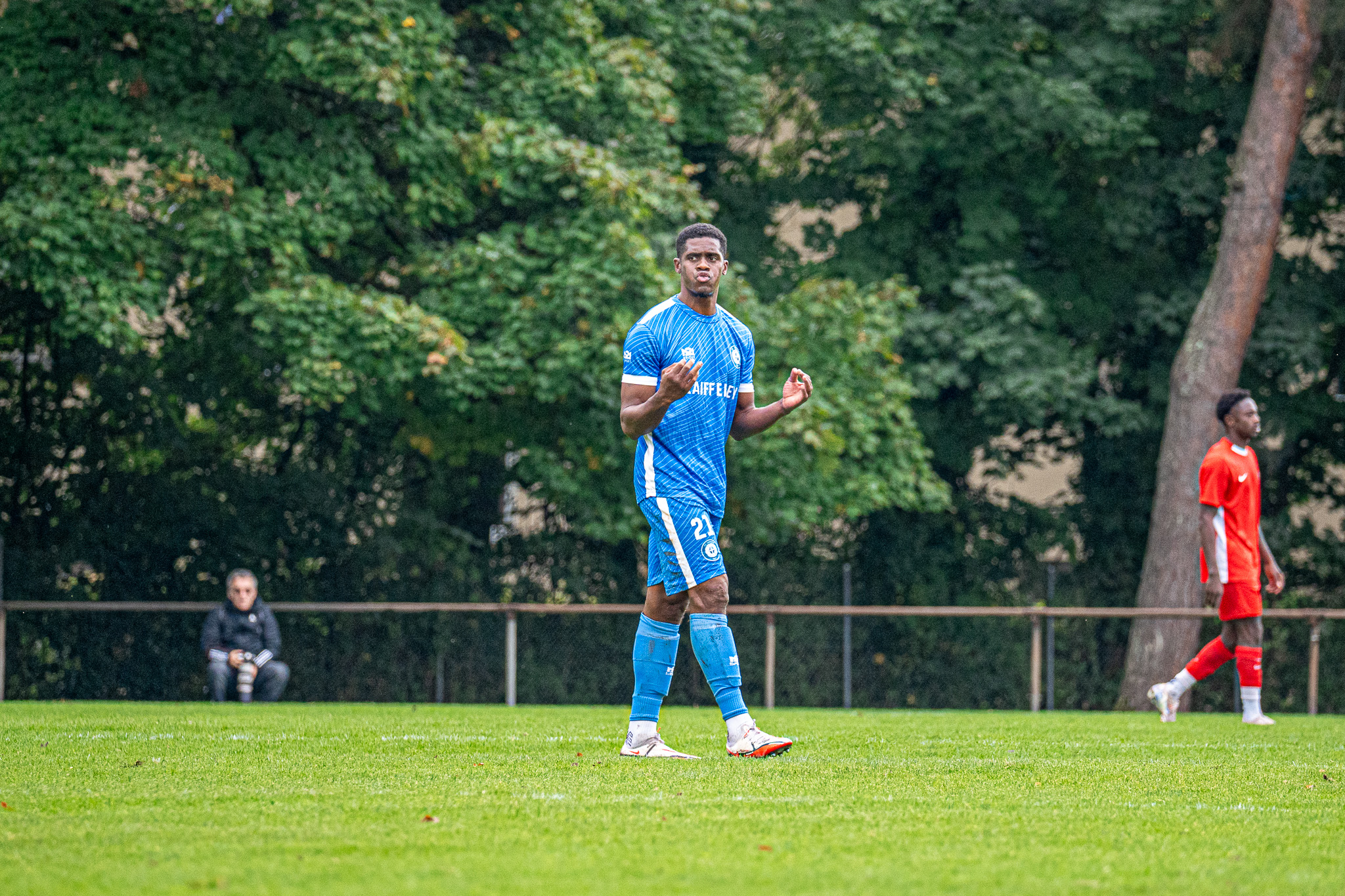 C’est Versoix, grâce au but de Killian Gallet, qui a ouvert la marque après une percée splendide de Momo Rabhi, qui a servi son coéquipier sur plateau (15′ 1-0). Mais les Saconnésiens ont su répondre 3 minutes plus tard sur un coup franc très bien tapé par Erion Salihu, directement sur la tête du renfort majeur de Grand-Saconnex II pour ce match, Seydou Kiendrebeogo (18′ 1-1). Le spectacle ne faisait que commencer. Quelques minutes après, toujours sur coup franc, Jack O’Riordan a surgi pour remettre Versoix devant au score (22′ 2-1).