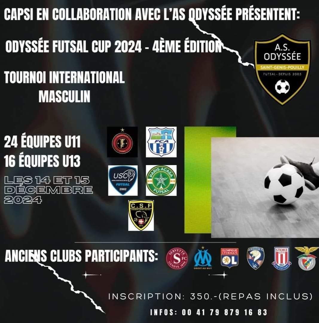 Ci-dessous les affiches du prochain tournoi “Capsi” en collaboration avec l’AS Odyssée, ainsi que celle de la Capsicom Futsal CUP les 22-23 février 2025.