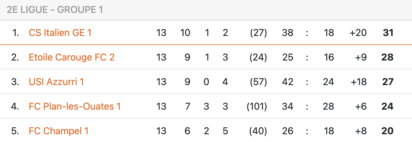 Une semaine plus tôt, Etoile Carouge II avait battu Azzurri (4-3), raison pour laquelle l’équipe entraînée par Julian Esteban est passée devant celle de Choukri Hedhiri au classement. Le néo-promu ne compte toutefois qu’une unité de retard sur les Stelliens, et quatre sur le leader. La victoire contre le FC City (4-0, 1-0 à la mi-temps) a dans ce sens fait beaucoup de bien avant de boucler l’année mercredi, avec un dernier 1/16 de finale de Coupe genevoise à disputer contre le CS Interstar.