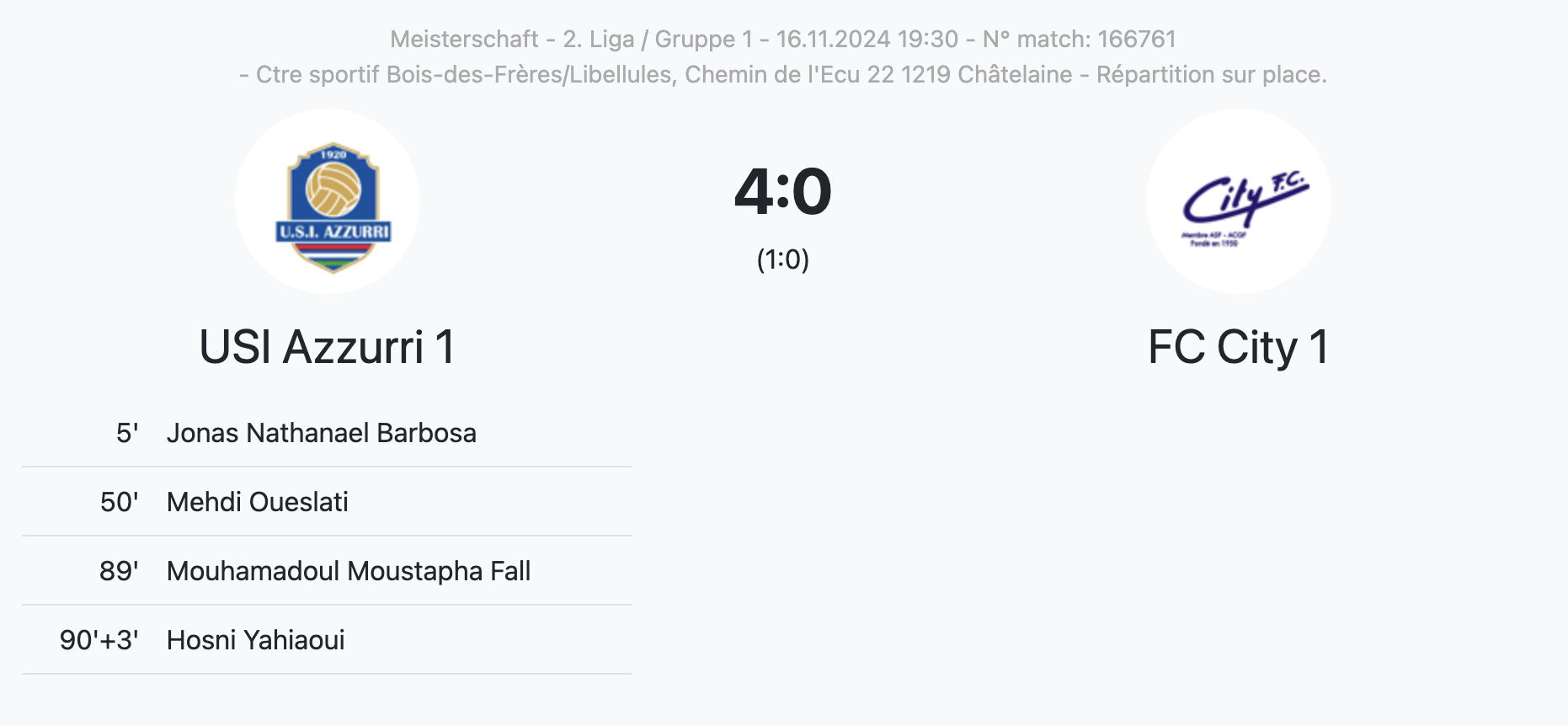 Plan-les-Ouates, qui se situe lui trois points derrière Azzurri, a terminé son premier tour par une victoire contre Kosova, vendredi soir (4-2). Le quatrième but de Beni Mangana vaut le détour !