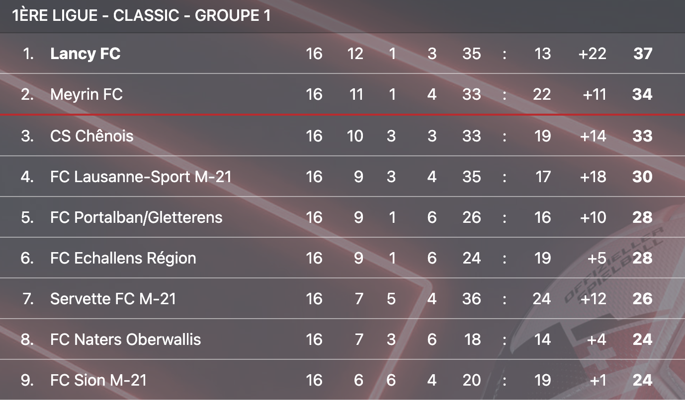 La qualité et le potentiel de ce Lancy FC, nous le disions en début de saison déjà, n’en faisait pas un néo-promu comme les autres. Cela s’est confirmé lors du premier tour. Voir les Lancéens seuls en tête du classement en ayant gagné 3/4 de leurs matchs (12 victoires en 16 journées, dont 7/7 loin de leurs bases) a cependant de quoi impressionner. À l’heure de la reprise, la formation entraînée par Samir Boughanem n’a donc aucune raison de ne pas envisager une nouvelle montée.