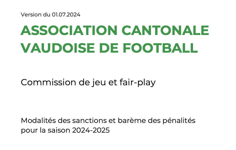 L’ACVF a érigé un document qui concerne le barème des pénalités disciplinaires pour la saison 2024-25.