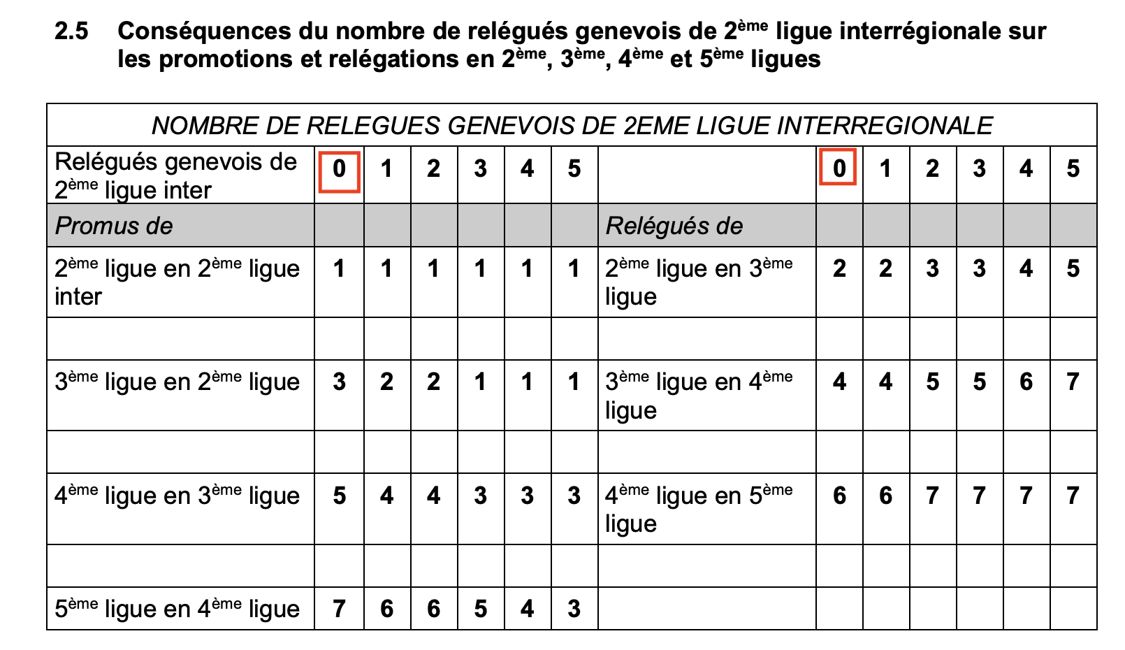 À noter que, dès la saison 2025-26, avec 5 groupes de 14 équipes en 2ème ligue inter, les modalités seront les suivantes :