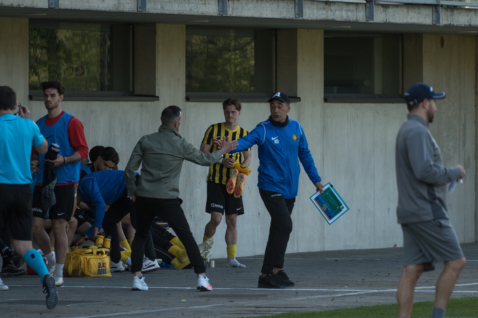 Les deux entraîneurs David Joye et Domingos Ribeiro après le match. @zuodarfoto