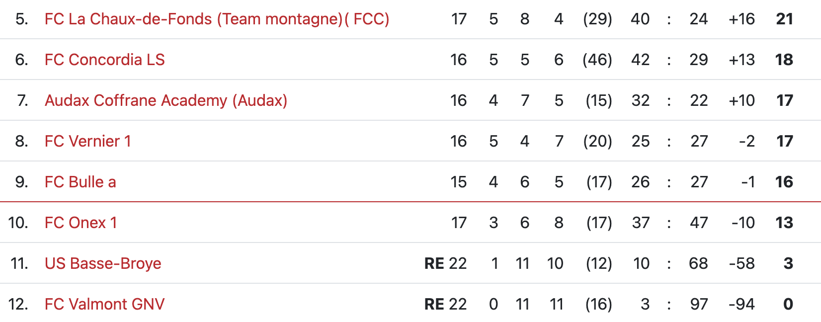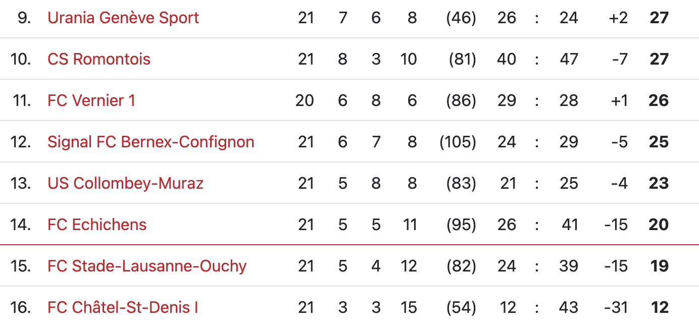 En l’état actuel des choses, Echichens, bien qu’au-dessus de la barre, serait aussi relégué (explications).