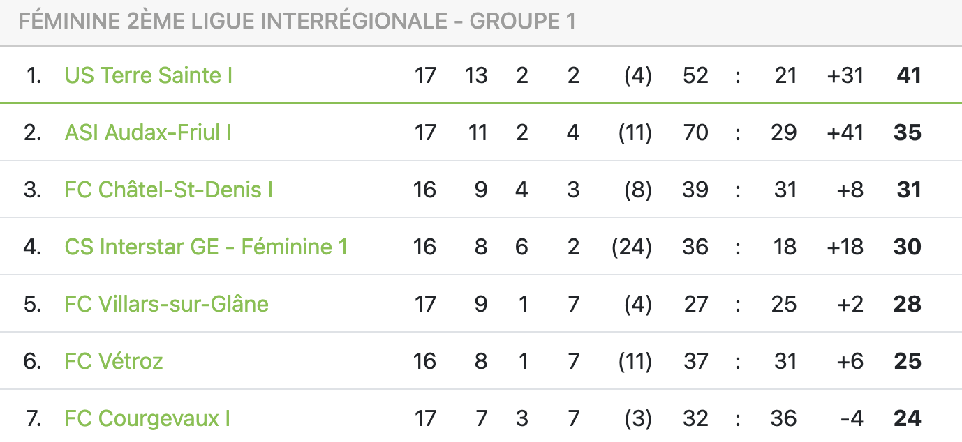2ème ligue inter, groupe 1Interstar s’attaque à une montagne ! Deux semaines après leur victoire contre le rival genevois Aïre, et trois jours avant le remake de ce match en quarts de finale de la Coupe genevoise, les pensionnaires de Varembé accueillent le leader du groupe 1 de 2ème ligue inter féminine. Actuellement 4ème, le CSI – meilleure défense du groupe avec 18 buts encaissés – a l’occasion de se rapprocher ultérieurement du podium, et de s’offrir une victoire de prestige face au futures championnes du groupe.