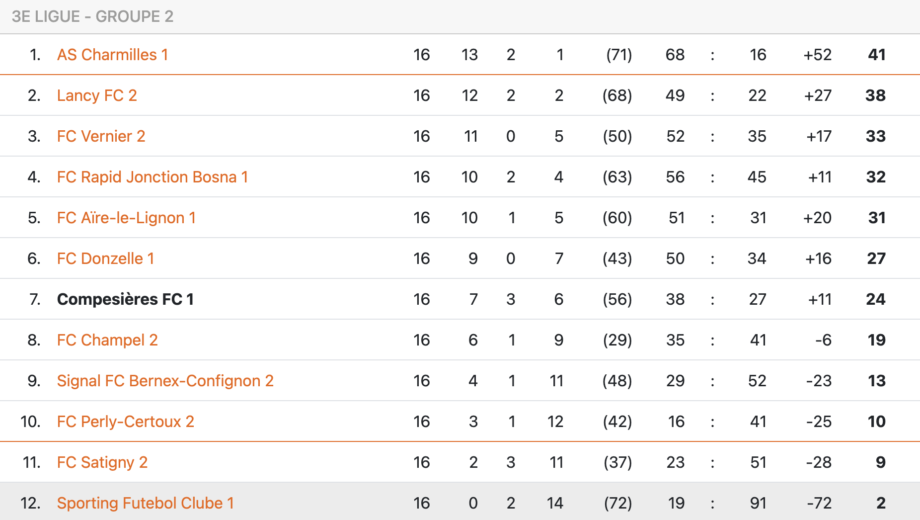 Cette saison, Compesières a récolté 24 points en 16 matchs. En 2023-24, l’équipe avait bouclé le championnat avec 40 points en 22 matchs (3ème place).