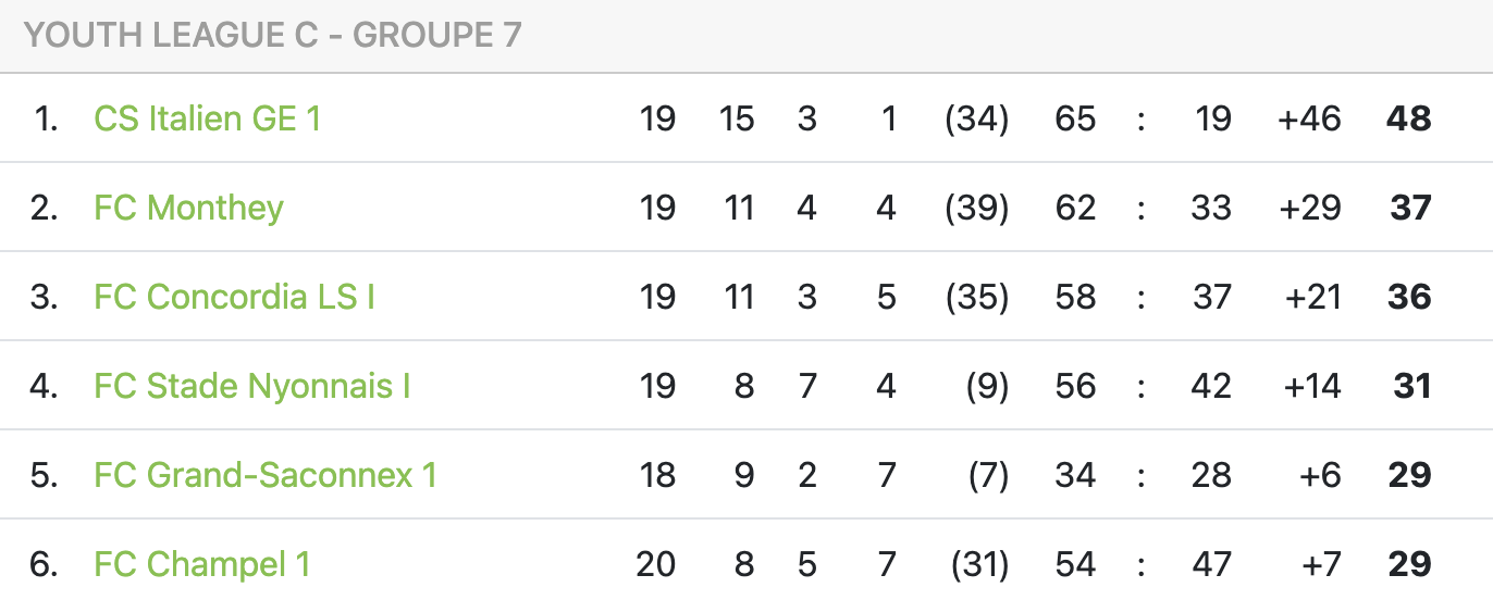 C’est fait pour le CS Italien ! À trois journées de la fin du championnat de Juniors C Inter, la formation entraînée par Tiago Ferreira, Daniel Sanchez et Jassem Gasser ne peut plus être rattrapée par ses poursuivants, et est donc championne de son groupe. Le CS Italien disputera les finales suisses de Brack Youth League le samedi 21 juin prochain.