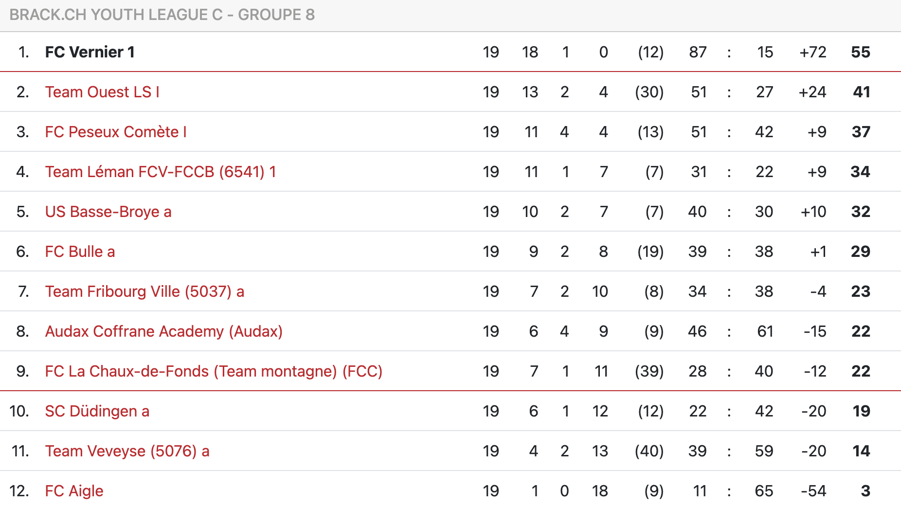 Que dire de la saison du FC Vernier, si ce n’est que ce sacre prématuré est on-ne-peut plus mérité ? Avec 87 buts marqués, seulement 15 encaissés et 18 victoires en 19 matchs, les chiffres parlent d’eux-mêmes : ce FC Vernier-là était tout simplement plus fort que toute concurrence. Leur seul match nul de la saison remonte à la 8ème journée (13 octobre 2024, 1-1 contre le Team Ouest Lausanne). Pour le reste, les protégés d’Igor Araujo ont tout raflé. La prestation individuelle de Rayan Al Sarahin, auteur de 33 des 87 buts inscrits en championnat, mérite elle aussi d’être relevée.