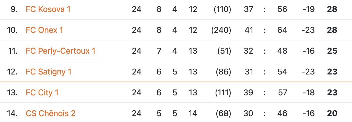 Avec désormais deux matchs à domicile contre Onex et Veyrier restants, les Rouge et Jaune ont leur destin en mains pour rester dans la ligue. Pour rappel, au terme du dernier exercice, Satigny s’était sauvé lors de la dernière journée. Rebelote cette année ? Réponse le dimanche 1er juin. À moins que l’affaire ne soit pas déjà classée lors de l’avant-dernière journée…