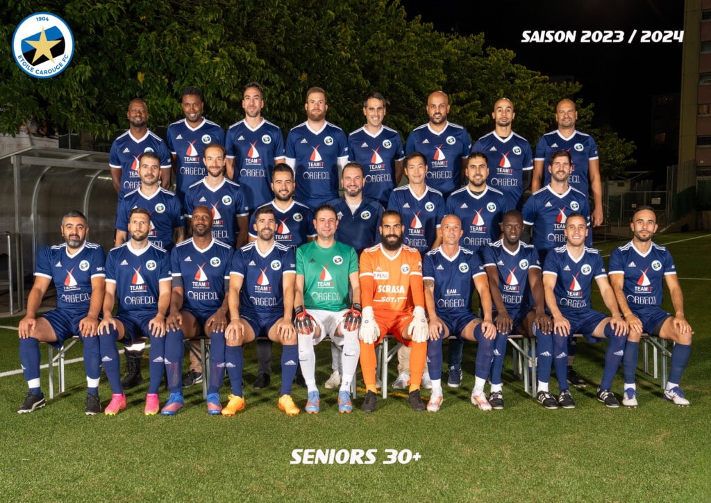 L’équipe de Seniors 30+ vainqueure de la Coupe de Suisse en 2024. Naïm Boukhenoufa est en haut, troisième en partant de la gauche. Photo : Etoile Carouge FC