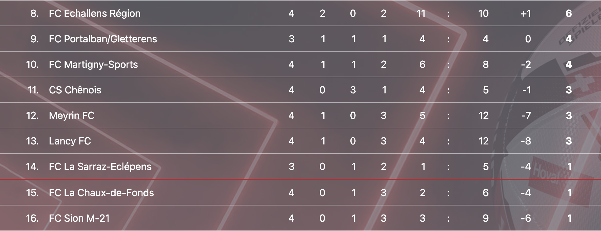 Avec le match nul du CS Chênois contre Payerne (0-0), les trois équipes genevoises qui avaient trusté le haut du tableau la saison dernière affichnt toutes le maigre bilan de 3 points en 4 matchs. Les M-21 du Servette FC sont quant à eux en tête et ont fait le plein (12/12). “Mais même si on avait perdu aujourd’hui, ça n’aurait pas été un souci”, a assuré l’entraîneur meyrinois Domingos Ribeiro. “La cohésion d’équipe a un peu plus de mal à se créer que lors des saisons précédentes, mais les contenus ont été corrects et on n’a pas toujours mérité de perdre lors des premières journées”.