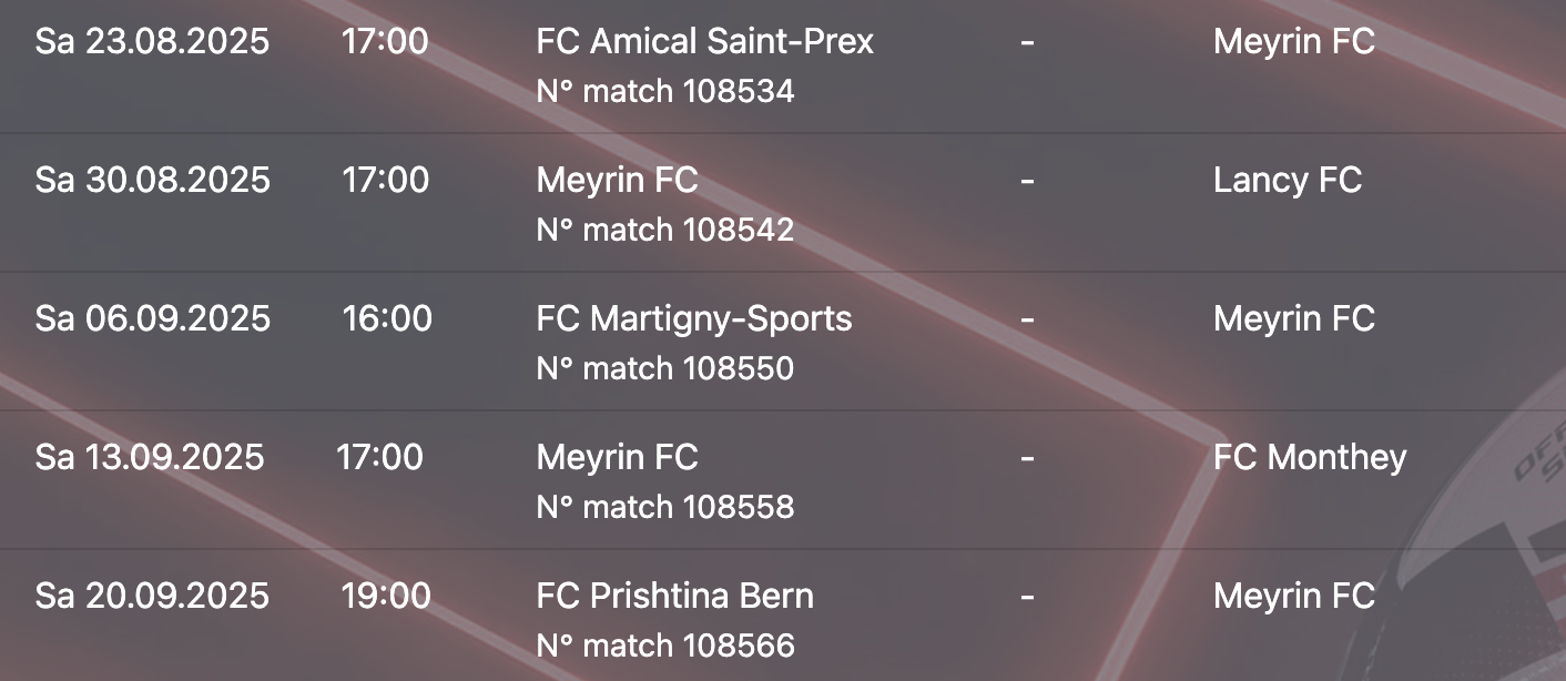 Les 5 prochains matchs au programme pour Meyrin.