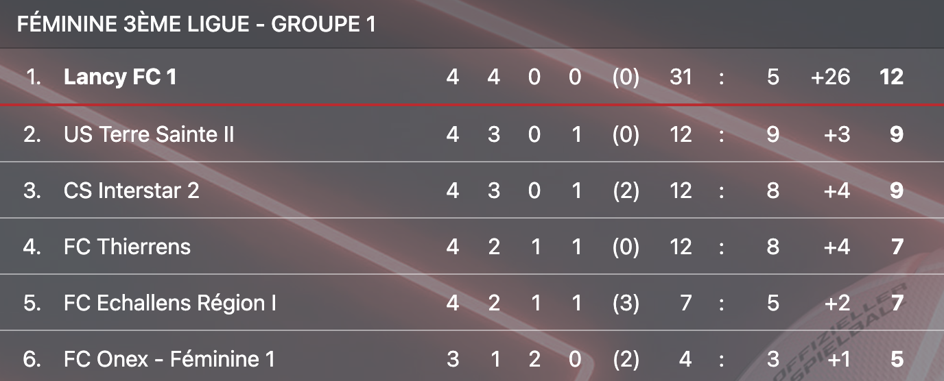 Le statistiques ne disent pas tout, mais elle peuvent parfois dire beaucoup. Après quatre journées de championnat, le Lancy FC est seul en tête de 3ème ligue. Quatre victoires, 31 buts inscrits et seulement 5 encaissés. Le tout en tant que néo-promu. Les Lancéennes réussissent un début de saison fracassant, et elles l’ont confirmé dimanche 14 septembre, en début d’après-midi, en ne faisant qu’une bouchée des Lausannoises de l’AF Luc-Dorigny (6-0).
