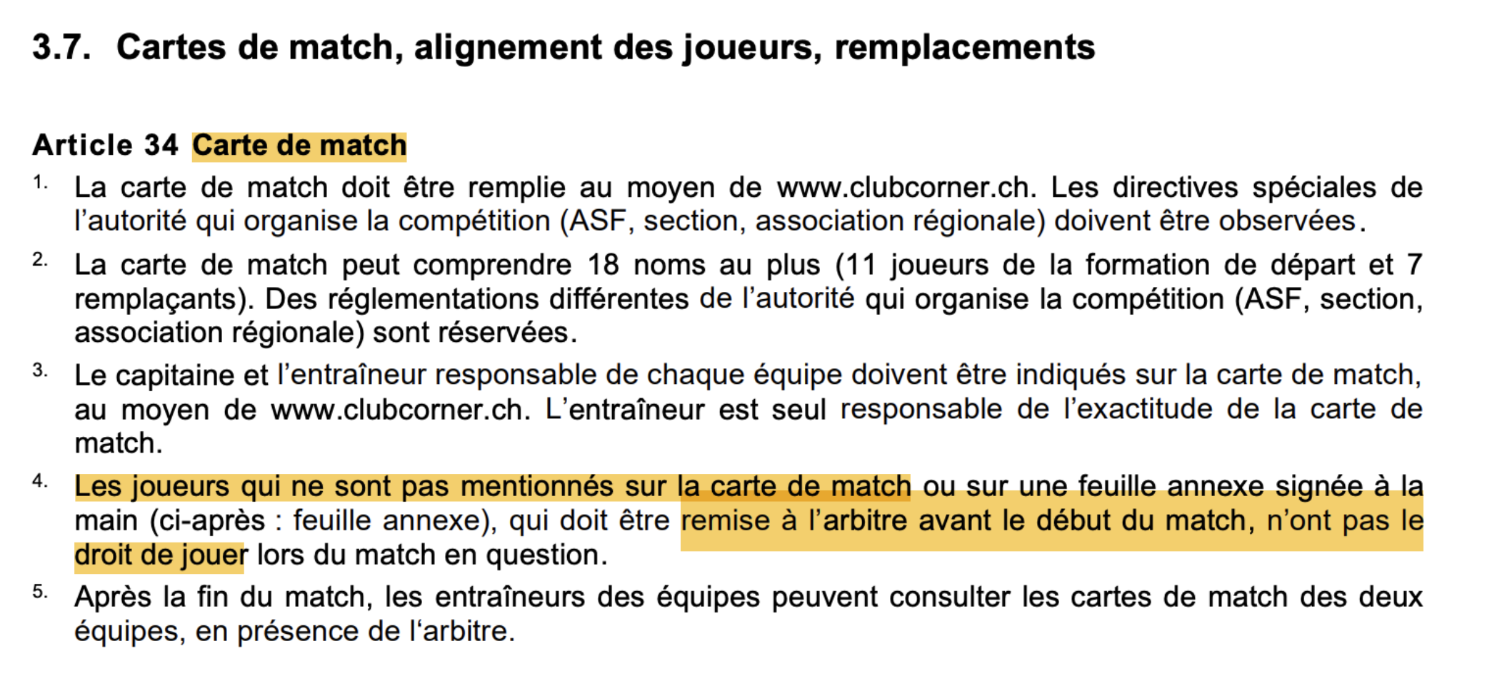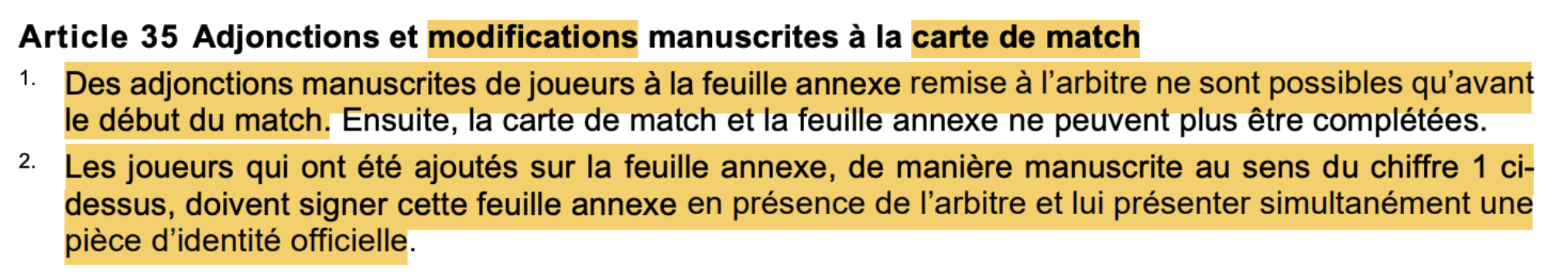 Voici ce que disent les articles 34 et 35 du règlement de jeu de l’ASF (juillet 2025)  :
