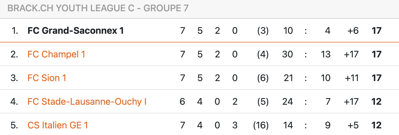 Tous deux poursuivants du FC Sion dans le groupe 7 de Juniors C Inter, Grand-Saconnex et Champel se sont quittés sur un nul qui pourrait faire les affaires des Valaisans (1-1).