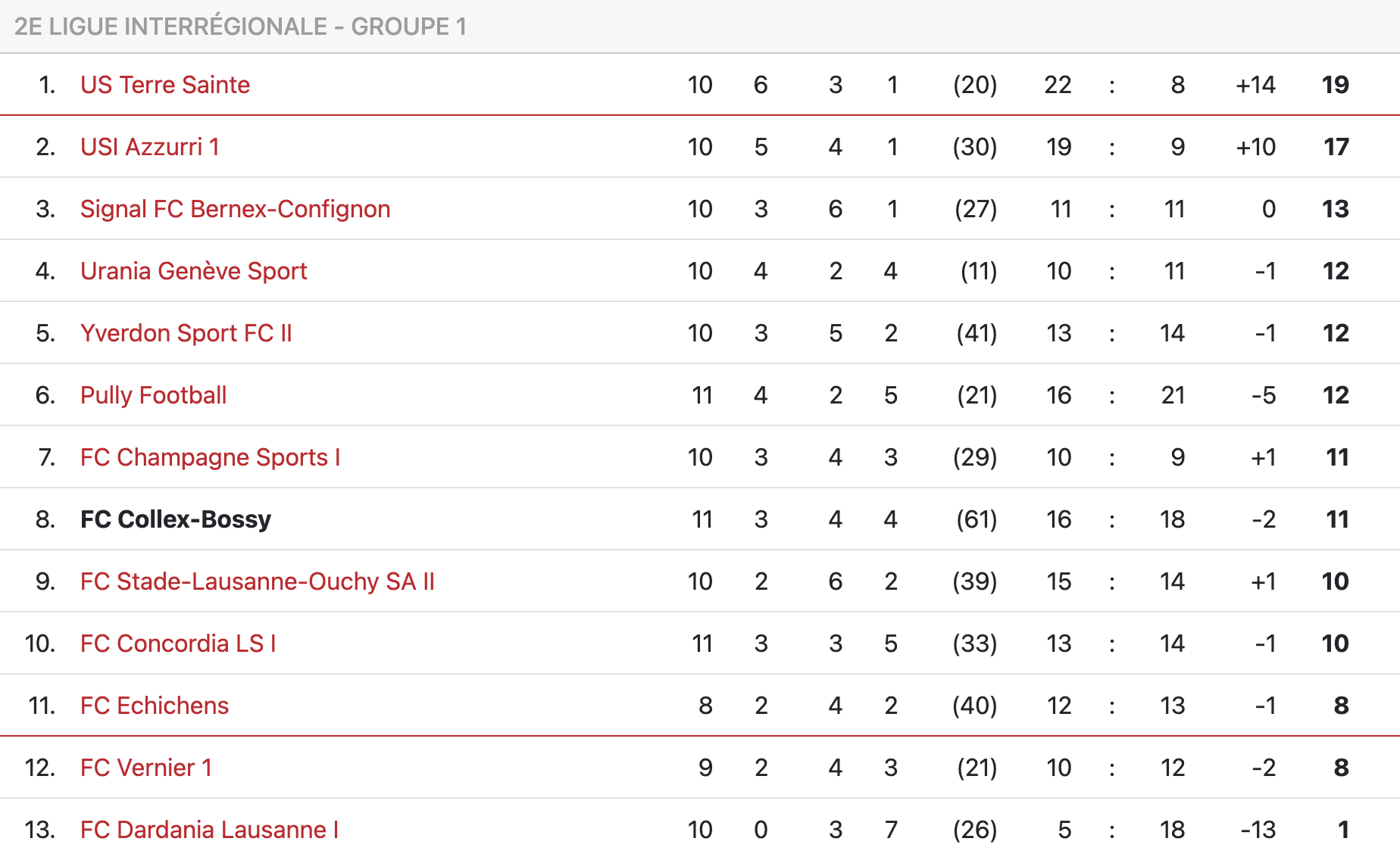 Mikael Palma et les siens n’ont plus que 3 matchs à jouer en 2024, en championnat : Concordia à l’extérieur, puis Azzurri et le SLO à domicile. Pour pouvoir davantage regarder devant que derrière soi en 2026, il faudra se montrer performant : “On espère enchaîner une série et accrocher le haut du tableau”, a assuré le nouvel entraîneur. “Il y a suffisamment de joueurs à Collex pour jouer le haut de tableau en 2ème ligue inter”. Le premier des trois derniers matchs de championnat de l’année aura lieu le samedi 18 octobre prochain à la Tuilière contre Concordia Lausanne.