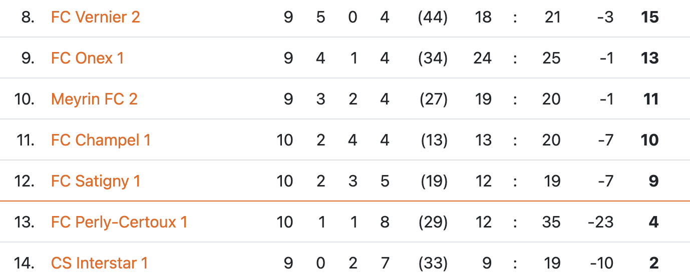 Autre élément à relever : la fragilité défensive perlysienne. La première équipe du FC Perly-Certoux a la moins bonne défense du championnat (35 buts encaissés en 10 matchs), et cela s’est ressenti, encore une fois, samedi soir. Il faudra forcément faire mieux lors de la prochaine journée, sur le terrain de Champel.