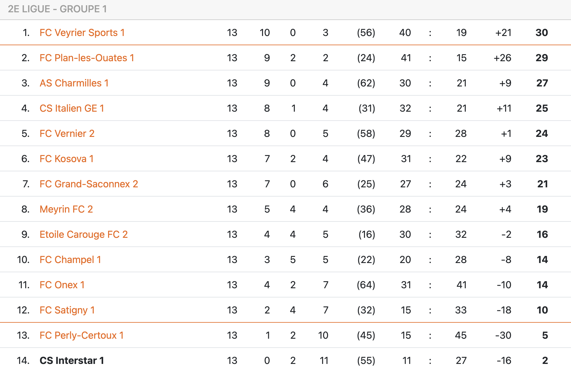 Le championnat de 2e ligue reprendra le dimanche 1er mars 2026 pour Interstar, avec un déplacement à la Fontenette pour y affronter Etoile Carouge II.