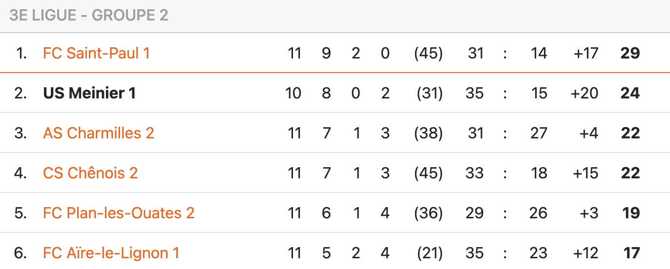 En plus de ce match de championnat, l’US Meinier disputera également un 1/16 de finale de Coupe genevoise, jeudi 20 novembre face au FC Satigny. Ensuite, place à la trêve et à la préparation d’un deuxième tour qui promet pour les Meinites. Forcément, la date du derby contre les voisins du FC Saint-Paul (12 avril 2026) est déjà entourée dans le calendrier…