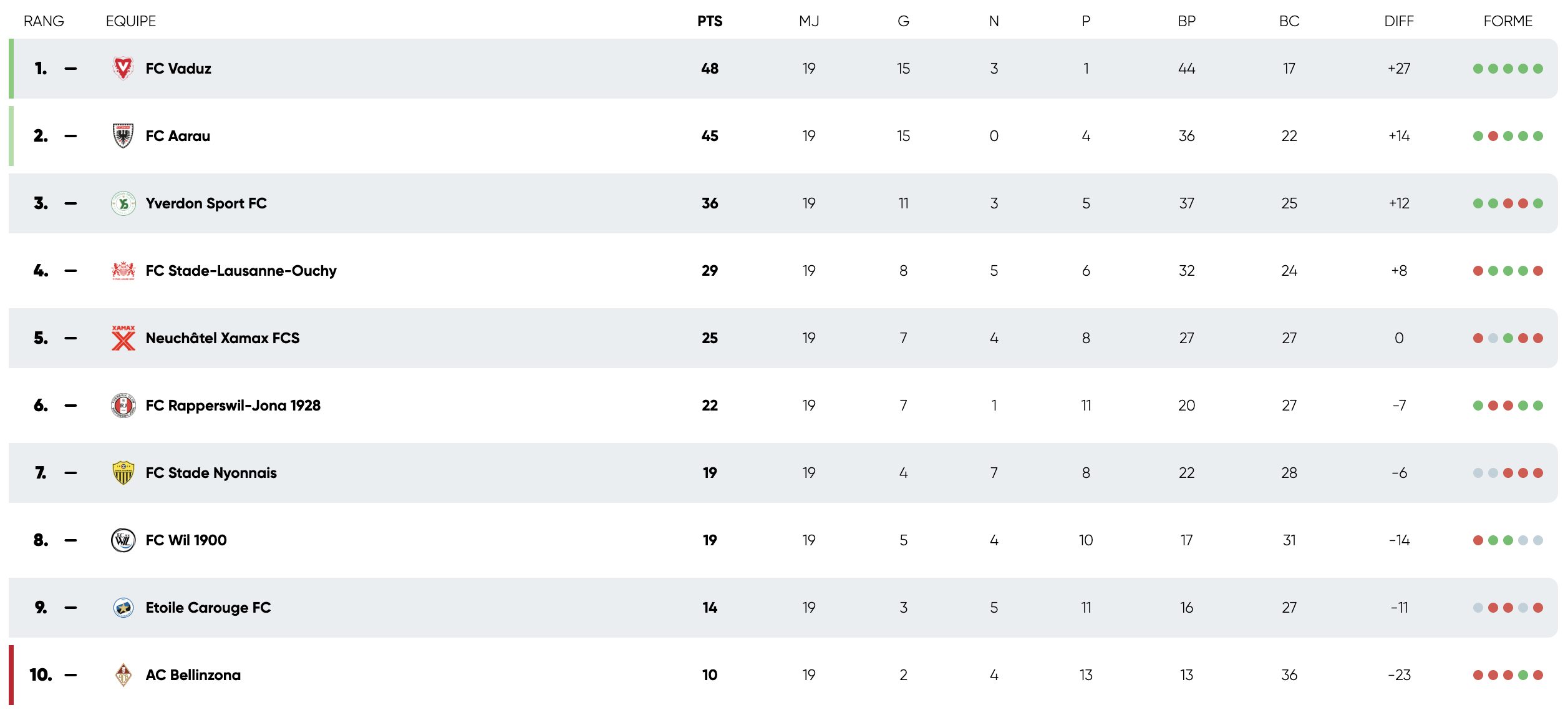 Pour rappel, Etoile Carouge possède 4 points d’avance sur la dernière place, occupée par Bellinzone, avant le coup d’envoi de la 20e journée. Pour que cet écart ne diminue pas, quel que soit le résultat au Tessin, une victoire contre le néo-promu Rapperswil (coup d’envoi à 20h15 à la Fontenette) serait plus que bienvenue.