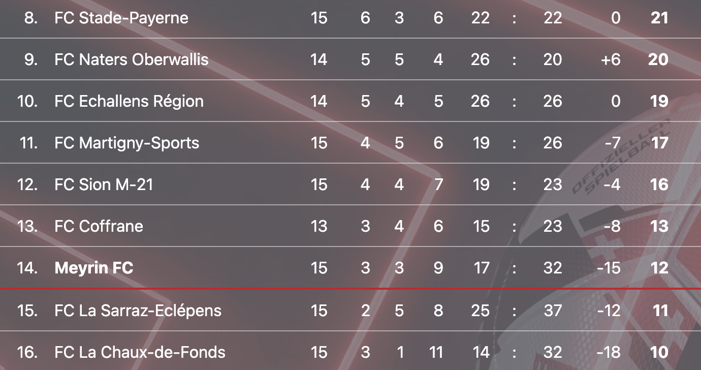 Le Meyrin FC a vécu un premier tour compliqué, bouclé juste au-dessus de la zone rouge. L’entraîneur Domingos Ribeiro parle de ce qu’il faudra changer pour se sauver.
