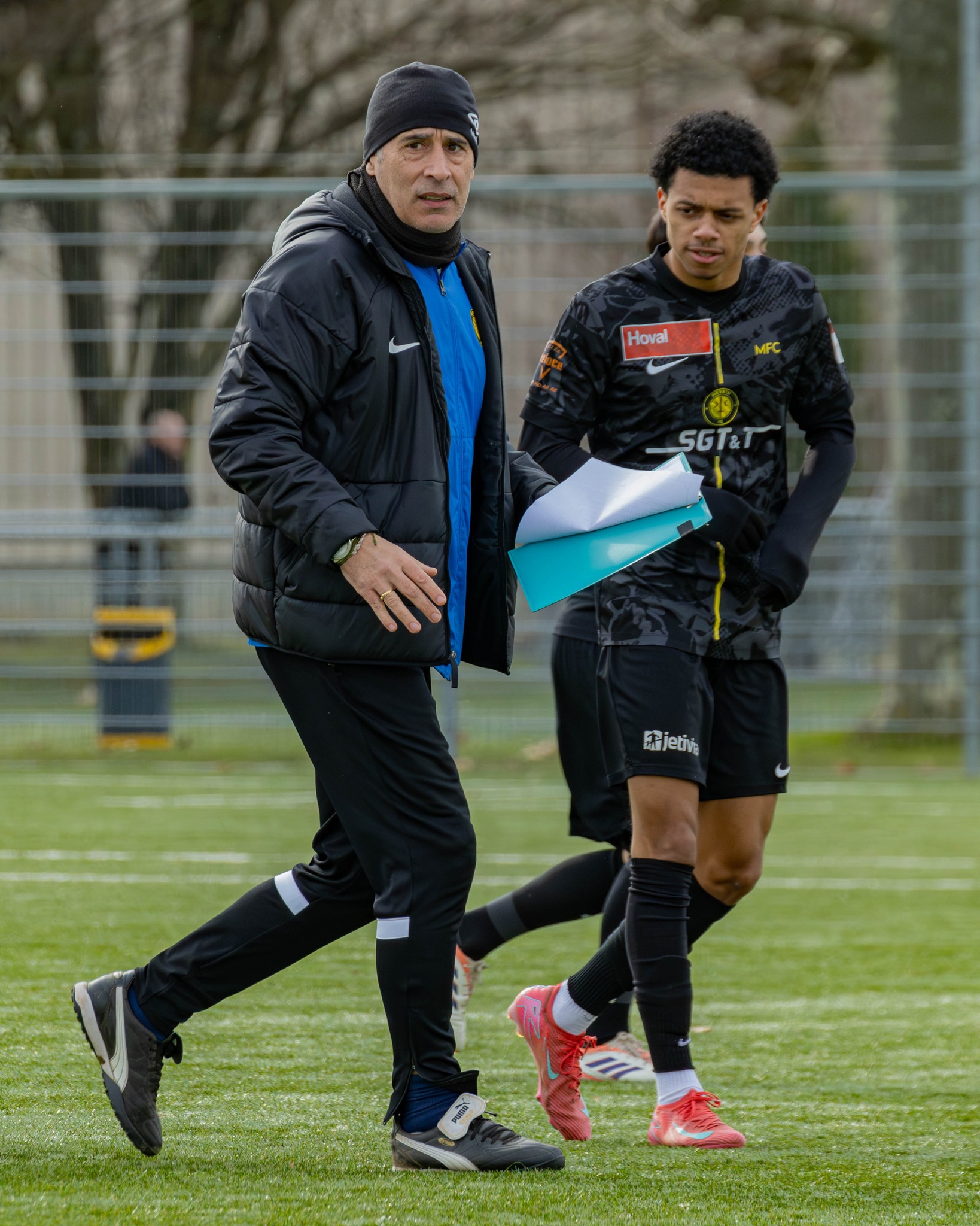 Domingos Ribeiro, entraîneur Meyrin FC : “On est sorti des deux dernières places que sur la fin. Quand tu es joueur et que tu passes presque tout le premier tour dans des positions de relégable, tu ne le vis pas de la même façon. Mais je pense que, par rapport au groupe qu’on a, ça peut aussi nous faire du bien de voir comment se passent les choses en bas. L’objectif, à présent, est de se maintenir. Si on regarde les contenus produits lors du premier tour, ça n’a pas été si mauvais que cela, mais on a fait beaucoup d’erreurs individuelles et on n’a pas non plus eu le même taux de réussite que l’année passée. En tenant compte de tout ça, je pense que ça serait logique qu’on ait 4-5 points de plus de ceux que l’on a aujourd’hui. Comme je l’avais dit en préambule de la saison, on part sur des cycles de deux ans. Pour cette première année, on veut d’abord se maintenir et former ce groupe qui a été friable lors du premier tour et à qui il a parfois manqué le bon état d’esprit pour faire la différence sur certains matchs”.