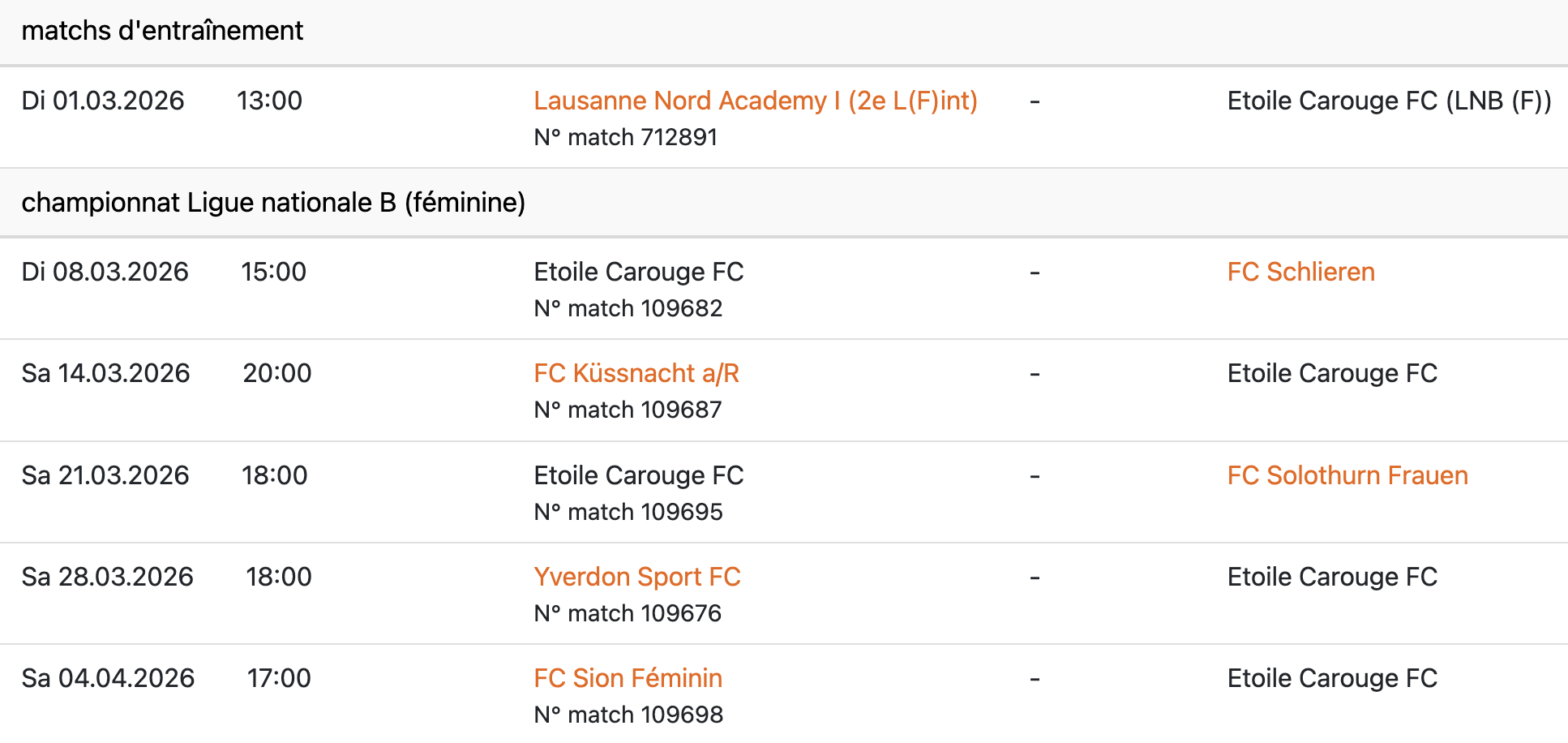 Etoile Carouge a désormais devant lui deux semaines avant son prochain match de championnat. De quoi permettre aux Stelliennes de disputer un match amical contre Lausanne Nord Academy (2e ligue inter) pour continuer à emmagasiner les précieuses minutes de jeu qu’elles n’ont pas pu avoir lors de leur préparation hivernale.