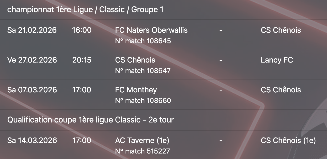 Et si Chênois entend entre cette équipe décrite par son entraîneur, il faudra cette fois-ci réussir un meilleur départ qu’en août dernier, malgré des conditions pas simples lors de la préparation : “Ça a été dur cette année. Mais pas que pour nous, c’est le lot de toutes les équipes j’ai l’impression. On ne s’est entraîné que sur synthétique, car le terrain en herbe est encore fermé chez nous. Alors qu’on devrait vraisemblablement jouer sur herbe samedi à Naters. Même au niveau de la météo, c’est plus dur que d’habitude. Il n’y a pas un soir où on ne s’est pas pris la pluie. Mais ce sont des choses que nous ne pouvons pas contrôler. À nous de nous adapter et de faire avec ce qu’on nous donne”.