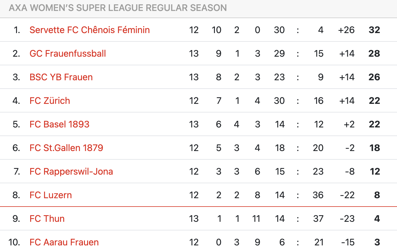 En terminant premières de la saison régulière (18 journées), les Servettiennes s’assureraient (au moins) une participation à l’Europa League pour la saison 2026-27.