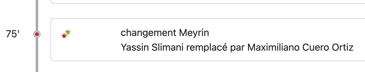 Le télégramme indique que Maximiliano Cuero Ortiz a fait son entrée à la 75e.