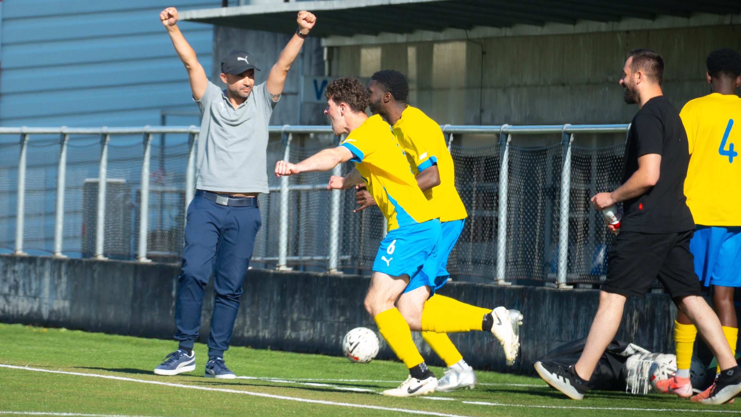 Helder Silva, à gauche, célèbre après une victoire obtenue à Carouge en fin de saison dernière. @_zuodarfoto