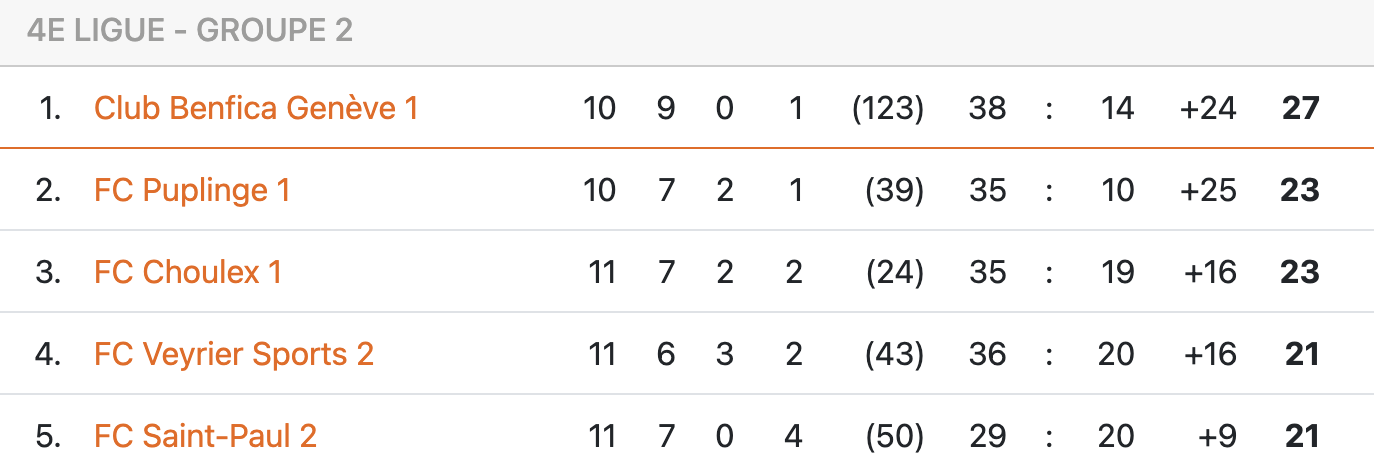 Un autre choc rythmera la soirée, quatre ligue plus bas que celui entre Lancy et Echallens. Toujours à 20h15, à Puplinge, les locaux accueilleront Benfica pour un match à rattraper qui promet. Quatre points séparent le leader des Puplingeois avant le coup d’envoi. Si cet écart devait être réduit à l’issue de la soirée, les cartes pour la course à la montée se verraient complètement redistribuées. Dans le cas contraire, Benfica prendrait une option déjà importante sur la promotion. Un vrai match à six points. À ne surtout pas manquer, évidemment.
