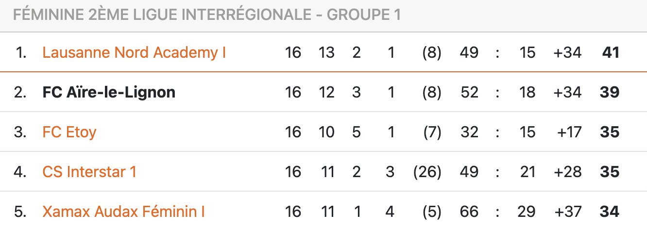 L’état des lieux est merveilleux, pour Aïre-le-Lignon. Les points de retard sur la première place ne sont plus que deux. Les rêves de promotion, à cinq journées de la fin, sont donc plus que jamais permis. Sans oublier la Coupe genevoise. Le mercredi 6 mai prochain, les Aïroises accueilleront Interstar pour tenter de retourner en finale, un an après avoir été battues 1-0 par Champel.