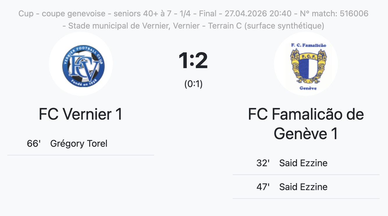 Famalicão (groupe “Promotion”) a lui aussi déjoué les pronostics en éliminant le FC Vernier (groupe “Champion”) (1-2). Said Ezzine a marqué le doublé décisif pour les visiteurs.