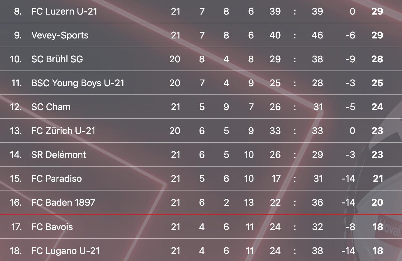 Avertissements : Clément, Diallo (Bavois); Sliskovic, Aversa, Gegaj, Heiniger (Kriens).