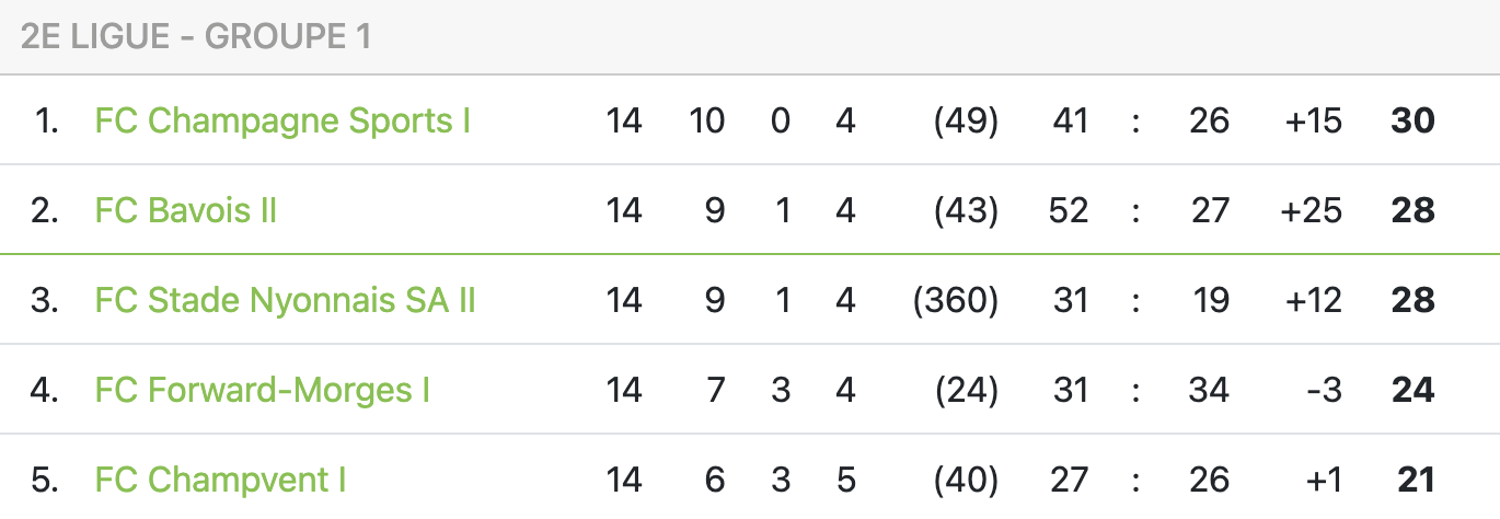 Alors que Champagne avait terminé le premier tour en tête, le leader a enregistré deux défaites en deux matchs depuis la reprise. Et la raison principale à cela n’est pas à aller chercher bien loin : sept buts encaissés en deux matchs entre la défaite de la semaine précédente 3-0 contre la réserve du Stade Nyonnais et ce revers au Parc des Sports. En plus du manque de solutions offensives en première mi-temps, les visiteurs ont connu de grandes difficultés à écarter le danger et à faire le ménage dans leur propre surface. Peu avant la demi-heure ils l’ont payé une deuxième fois. Sur un centre venu de la gauche de Claudio Ribeiro, c’est Nick Amougou qui a pu contrôler tranquillement le ballon avant de le pousser au fond des filets (27′, 2-0).