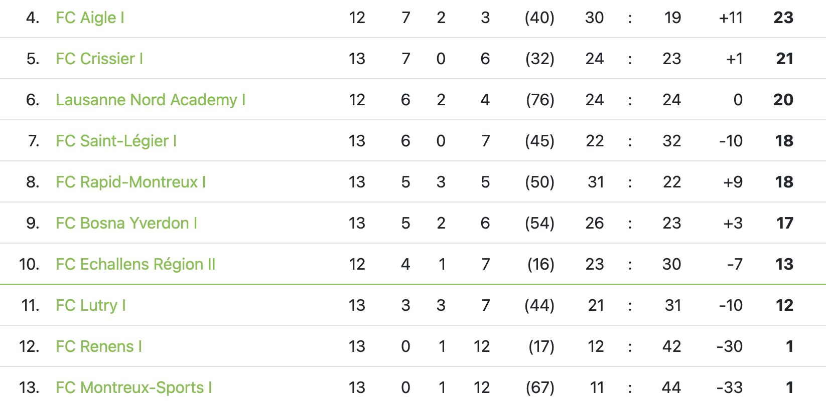 Aussi bien pour Rapid-Montreux que pour Lutry, le premier tour a été décevant. Les Montreusiens n’ont pas su confirmer les excellents résultats de la saison dernière, au cours de laquelle ils avaient fini champions d’automne. Lutry se retrouve quant à lui, comme il y a un an, sous la barre au moment d’aborder le second tour.